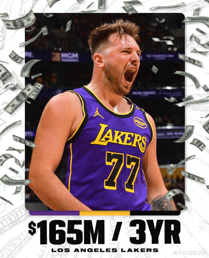 卢卡-东契奇与湖人达成了三年1.65亿的提前续约,实际上这份顶薪续约的细节是三年1.653亿美元,28-29赛季球员选项,旨在2028年夏可以帮助东契奇拿到一份五年高达4.17亿的历史级顶薪合同。(届时东契奇满10年工龄)